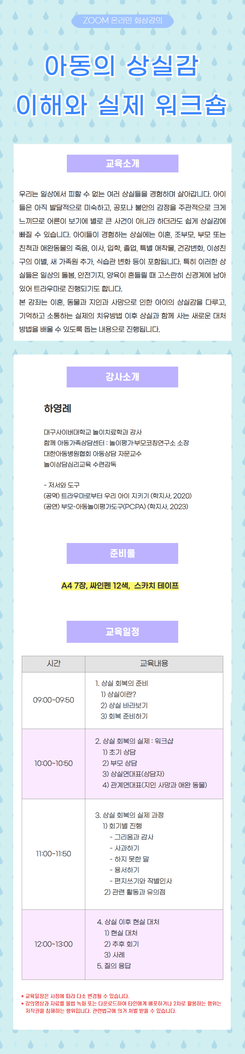 * 줌(zoom)을 활용한 비대면 교육으로 4/10(금)에 zoom 링크와 자료집이