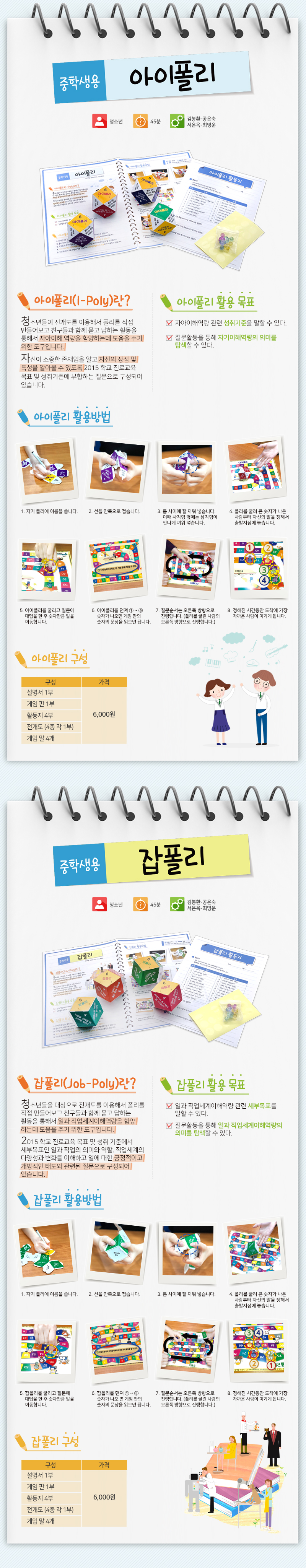 아이폴리는 자아이해역량을 함양하는데 도움을 주기 위한 도구이며, 잡폴리는 일과 직업세계이해역량을 함양하는데 도움을 주기 위한 도구입니다.