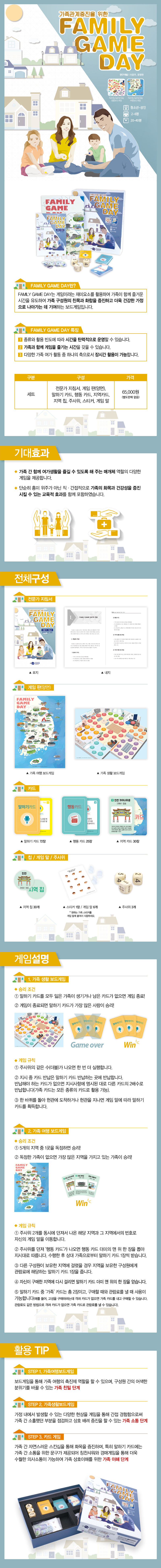 게임이라는 재미요소를 활용하여 가족이 함께 즐거운 시간을 유도하여 가족 구성원의 친목과 화합을 증진하고 더욱 건강한 가정으로 나아가는 데 기여하는 보드게임입니다.