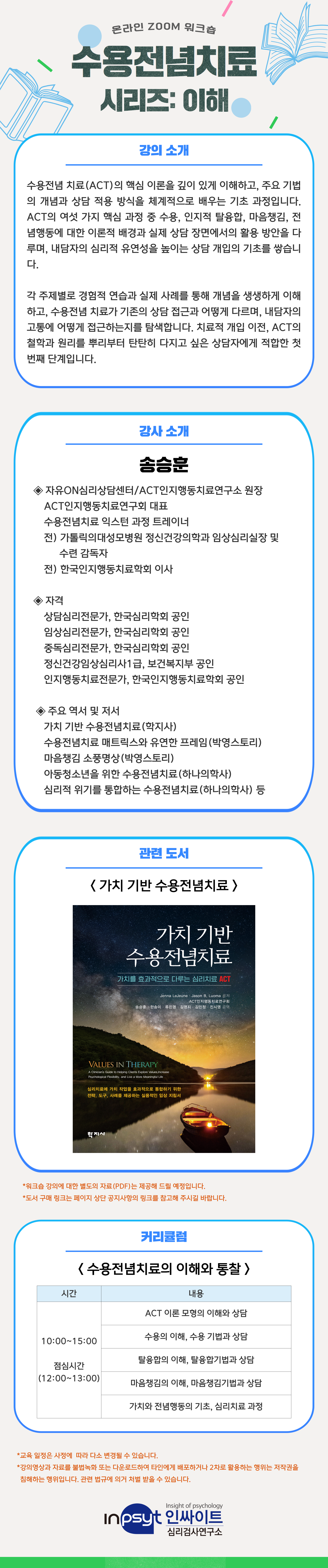 - 2/6(금) 수용전념치료 시리즈 : 심화 (클릭)