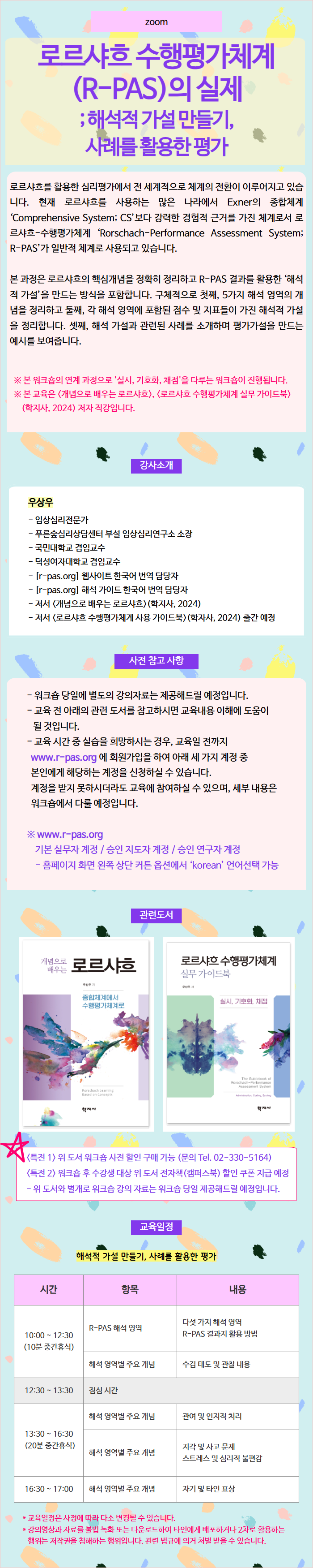 - 저서 <로르샤흐 수행평가체계 실무 가이드북>(학자사/2024)