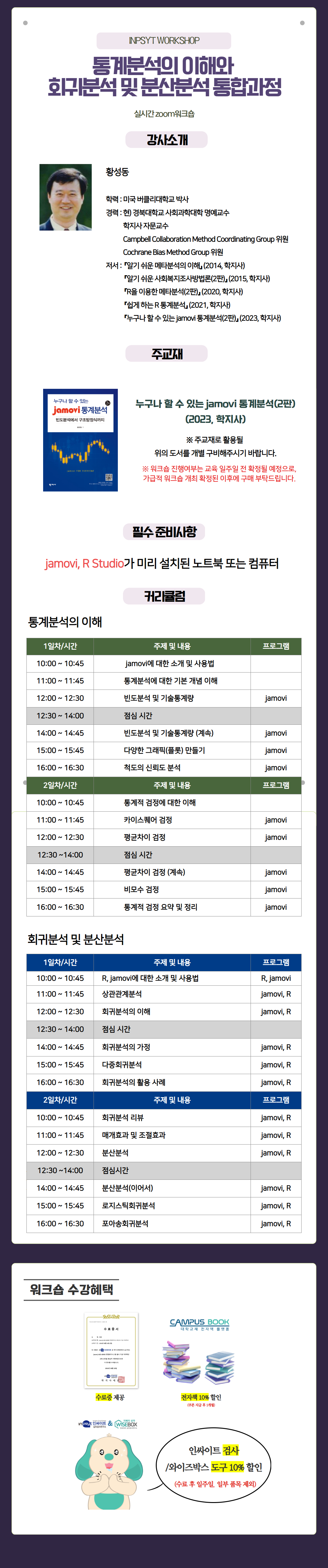 주교재는 학지사 신간 『누구나 할 수 있는 jamovi 통계분석(2판)』으로 개별 구비해주시기 바랍니다.