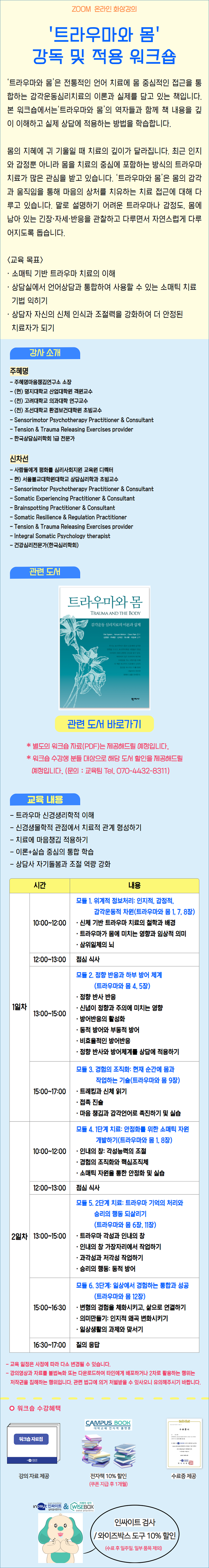 * 줌(zoom)을 활용한 비대면 교육으로 교육 전일에 zoom 링크와 자료집이