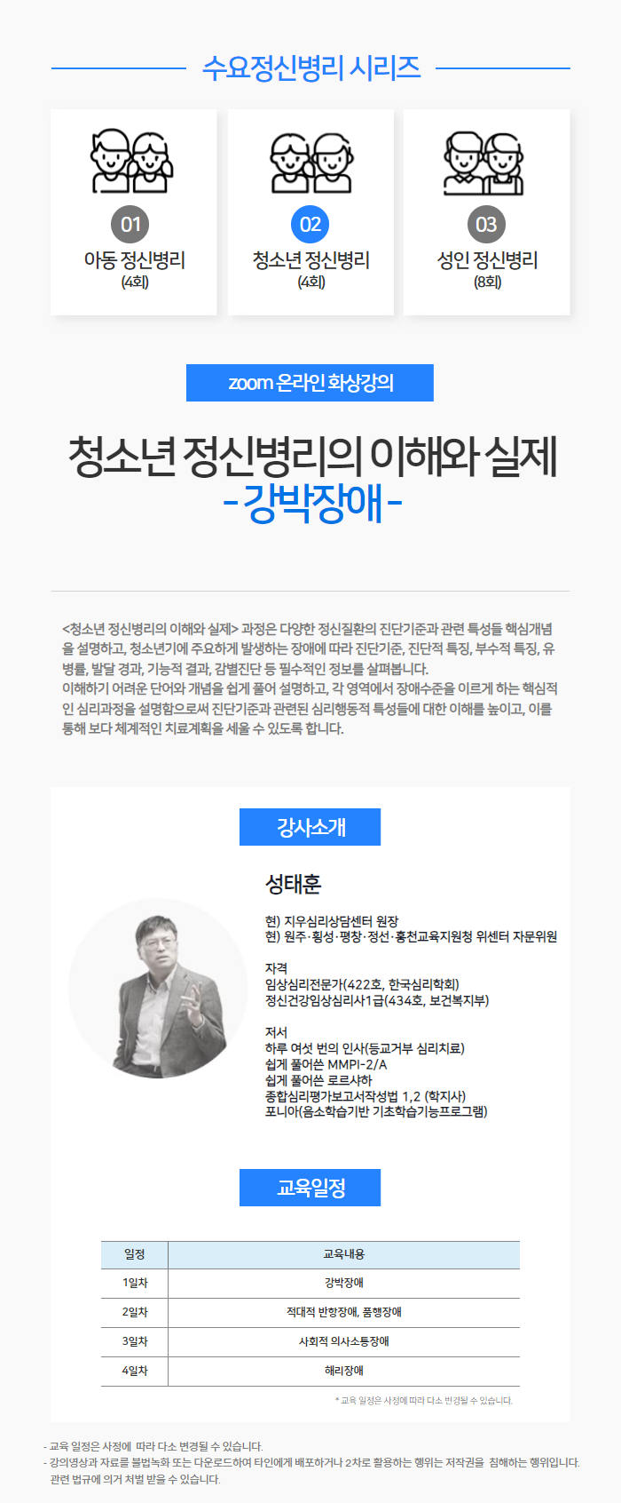 * 정신병리 시리즈 : 아동 정신병리(클릭) - 청소년 정신병리(클릭) - 성인 정신병리(클릭)