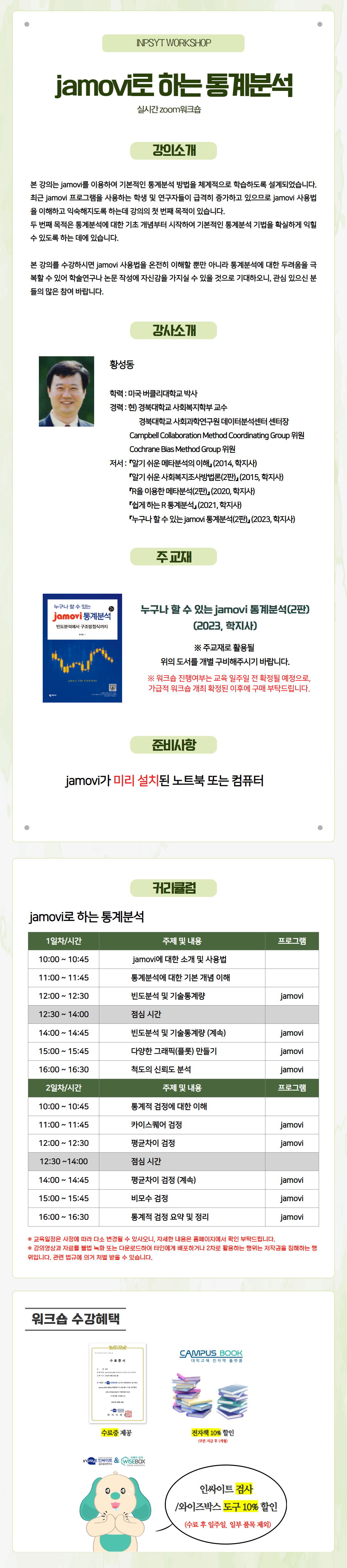주교재는 학지사 신간 『누구나 할 수 있는 jamovi 통계분석(2판)』으로 개별 구비해주시기 바랍니다.