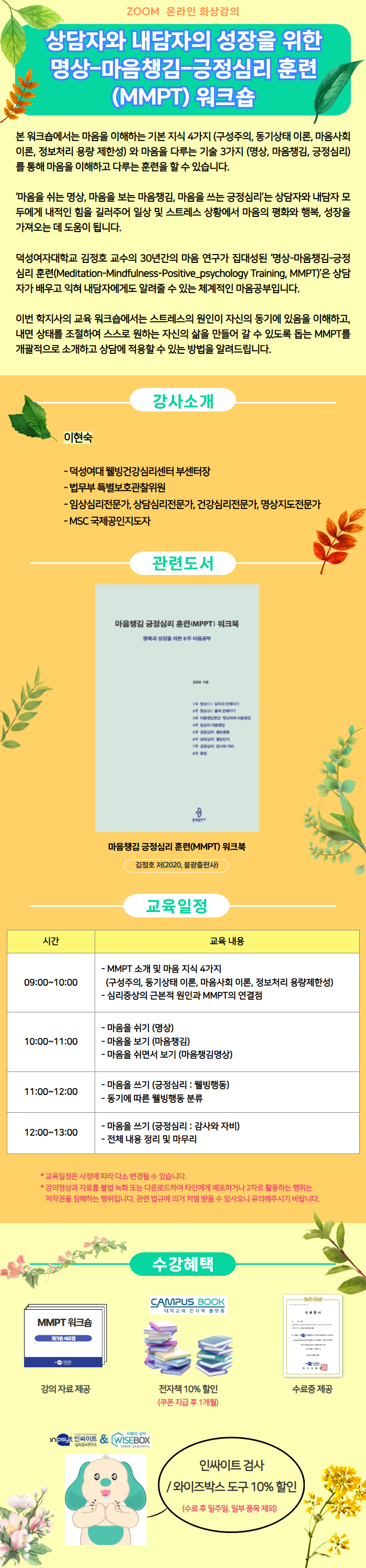 * 줌(zoom)을 활용한 비대면 교육으로 교육 전일에 zoom 링크와 자료집이