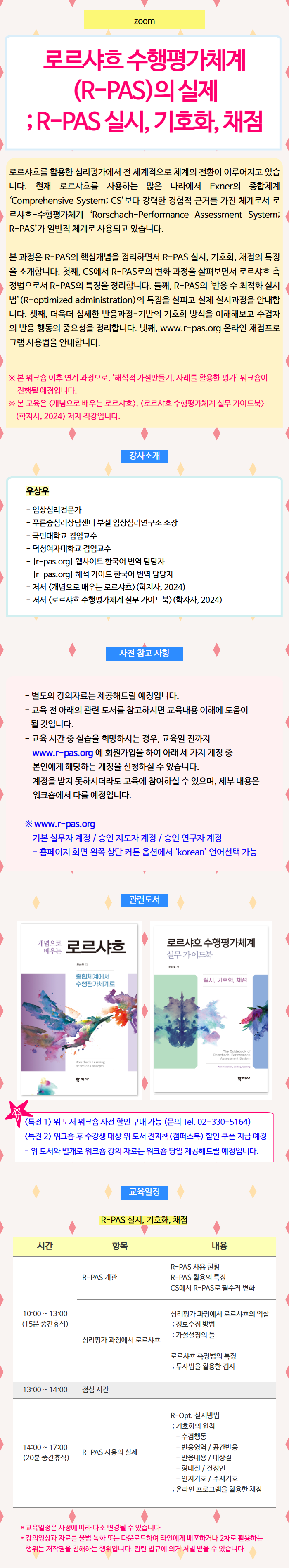 - 저서 <로르샤흐 수행평가체계 실무 가이드북>(학자사/2024)