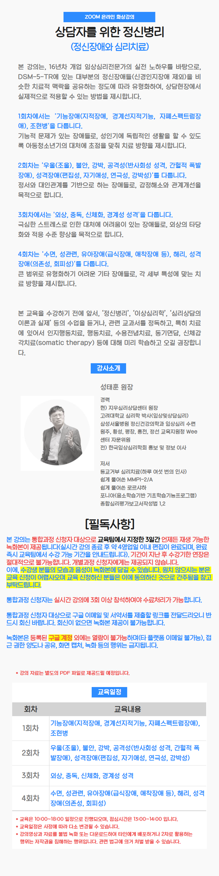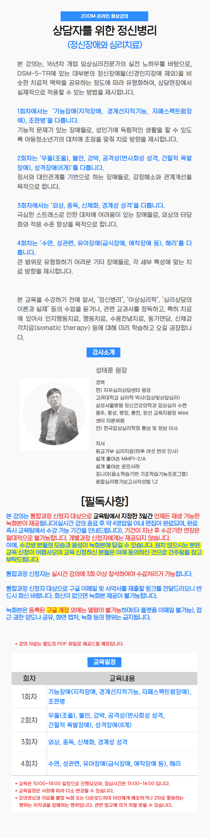 * 통합과정 신청자는 실시간 강의에 3회 이상 참석하여야 수료처리가 가능합니다.