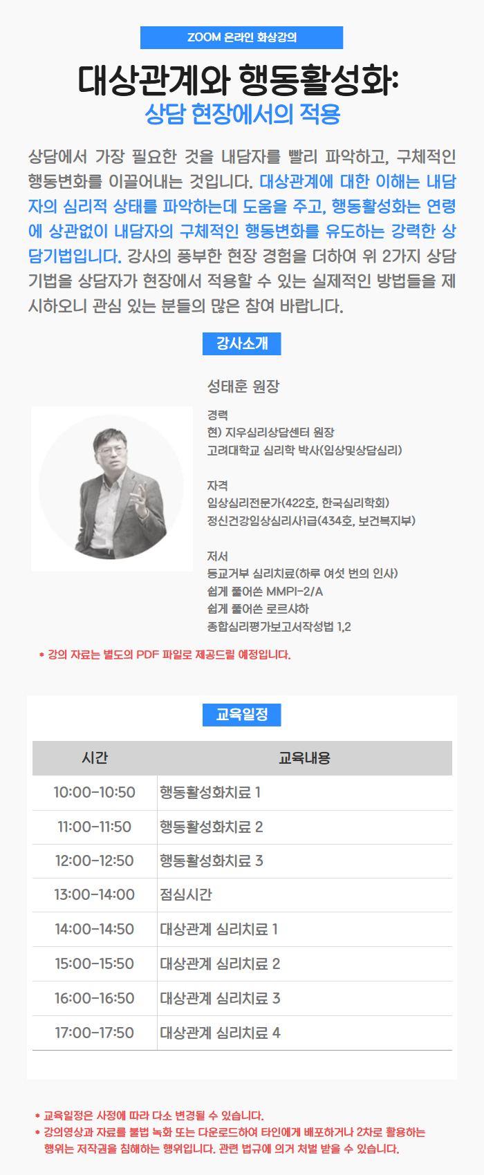 ※ Notice 해당 워크숍은 교육만족도 증진을 위한 정보 활용 목적으로 강의녹화가 진행되며, 녹화영상은 워크숍 종료 일주일 후 일괄 삭제됩니다. (수강생 제공용 X)