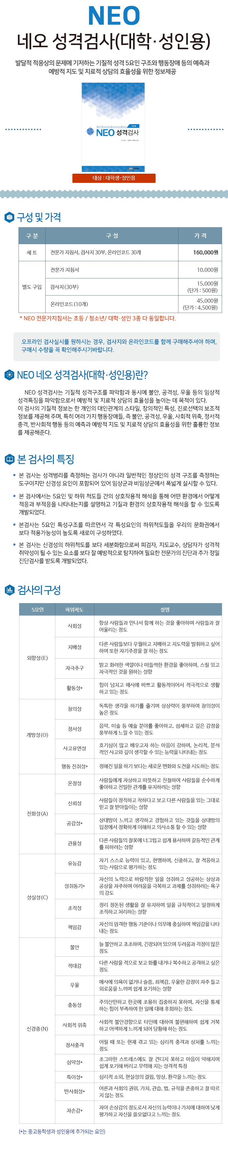 이 검사의 가격 및 판매 구성이