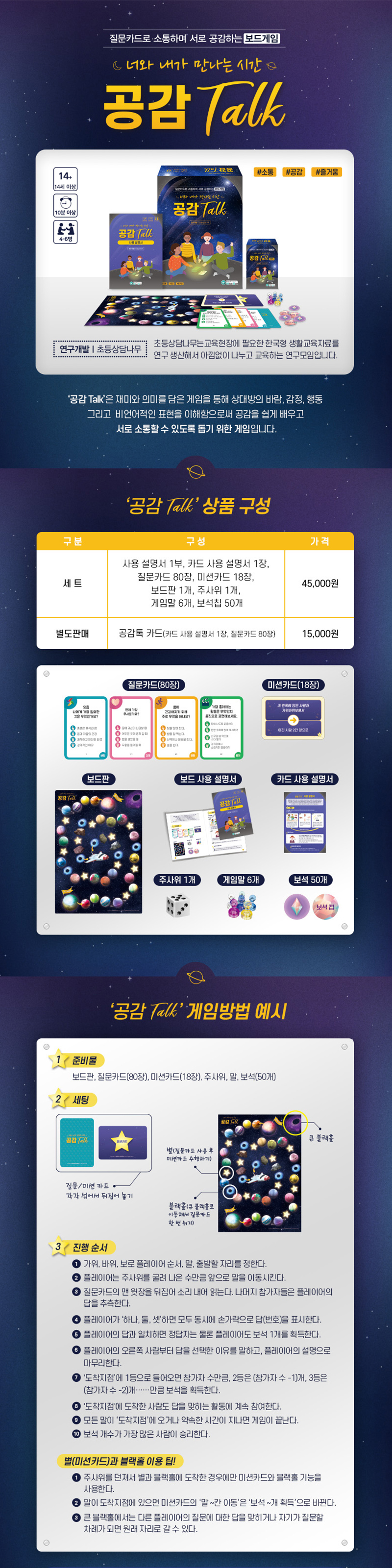 재미와 의미를 담은 게임을 통해 상대방의 바람, 감정, 행동 그리고 비언어적인 표현을 이해함으로써 공감을 쉽게 배우고 서로 소통할 수 있도록 돕기 위한 게임입니다.