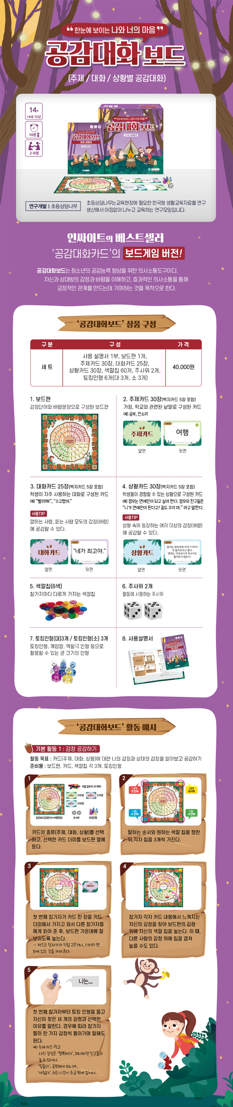 공감대화보드는 청소년의 공감능력 향상을 위한 의사소통도구입니다. 자신과 상대방의 감정과 바람을 이해하고, 효과적인 의사소통을 통해 긍정적인 관계를 만드는 데 기여하는 것을 목적으로 합니다.