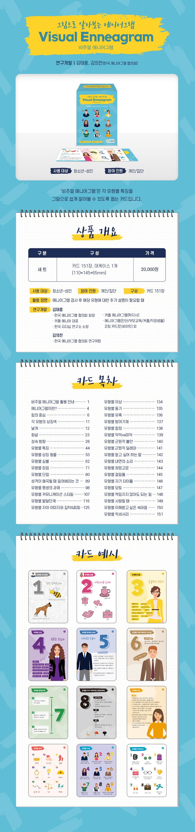 '비주얼 에니어그램'은 각 유형별 특징을 그림으로 쉽게 알아볼 수 있도록 돕는 카드입니다.