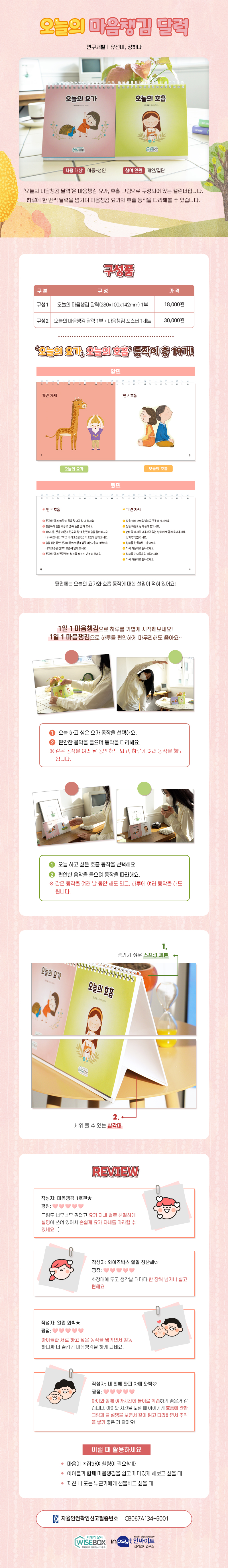 '오늘의 마음챙김 달력'은 마음챙김 요가, 호흡 그림으로 구성되어 있는 캘린더입니다. 하루에 한 번씩 달력을 넘기며 마음챙김 요가와 호흡 동작을 따라해볼 수 있습니다.