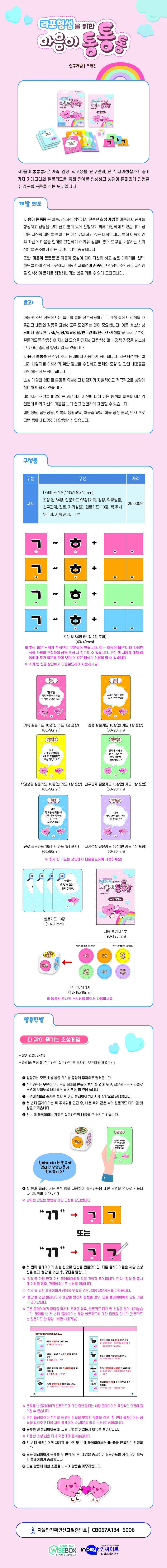 <마음이 통통통>은 가족, 감정, 학교생활, 친구관계, 진로, 자기성찰까지 총 6가지 카테고리의 질문카드를 통해 관계를 형성하고 상담이 흥미있게 진행될 수 있도록 도움을 주는 도구입니다.