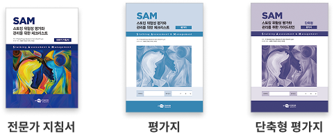 SAM 단축형 평가지는 빠른 스크리닝에 적합하도록 SAM 평가지의 문항을 추출하여 구성되었습니다. 한 눈에 가해자를 평가를 확인하기 편하며, 빠르고 간편하게 스토킹 위험성 평가할 수 있습니다.