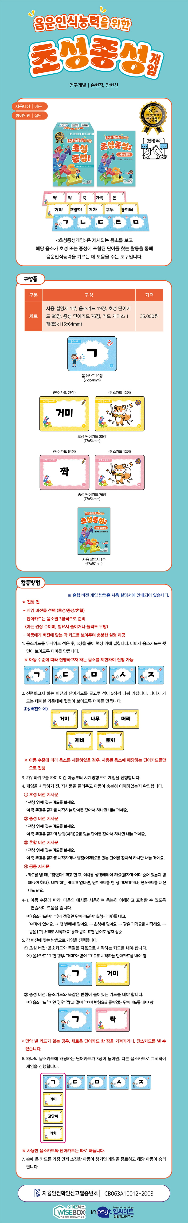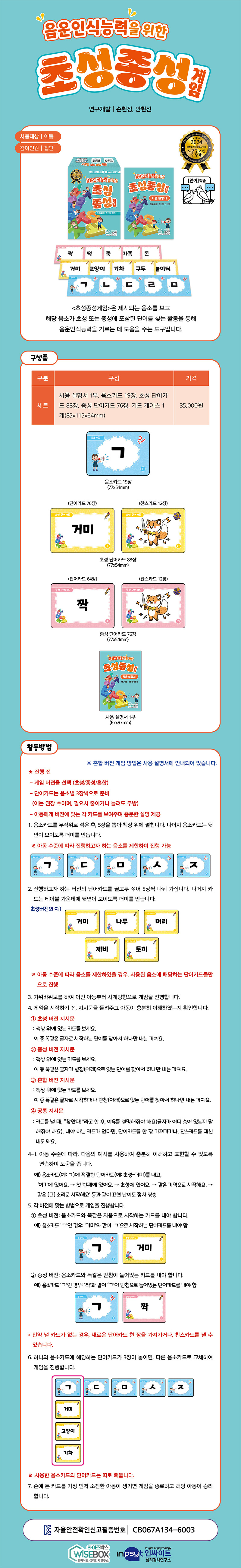 <초성종성게임>은 제시되는 음소를 보고 해당 음소가 초성 또는 종성에 포함된 단어를 찾는 활동을 통해 음운인식능력을 기르는 데 도움을 주는 도구입니다.
